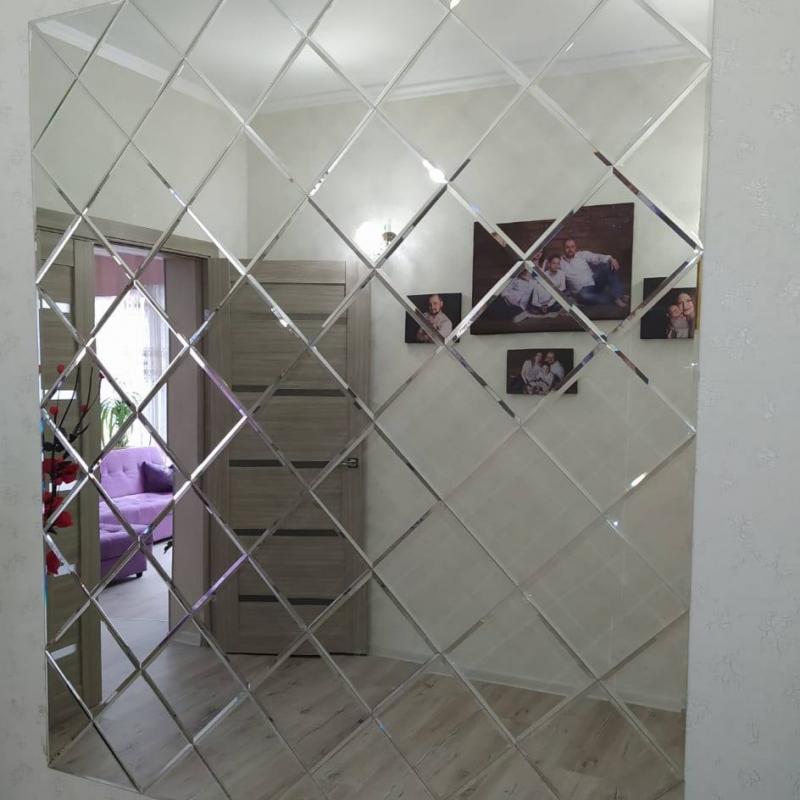 Использована серебристая квадратная зеркальная плитка